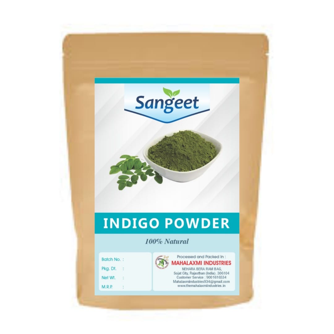 100% pure and certified organic indigo leaf powder it has no added chemicals in it whatsoever It also helps reduce dandruff regulates scalp health treats scalp infection and deals with frizziness hair fall and split ends
