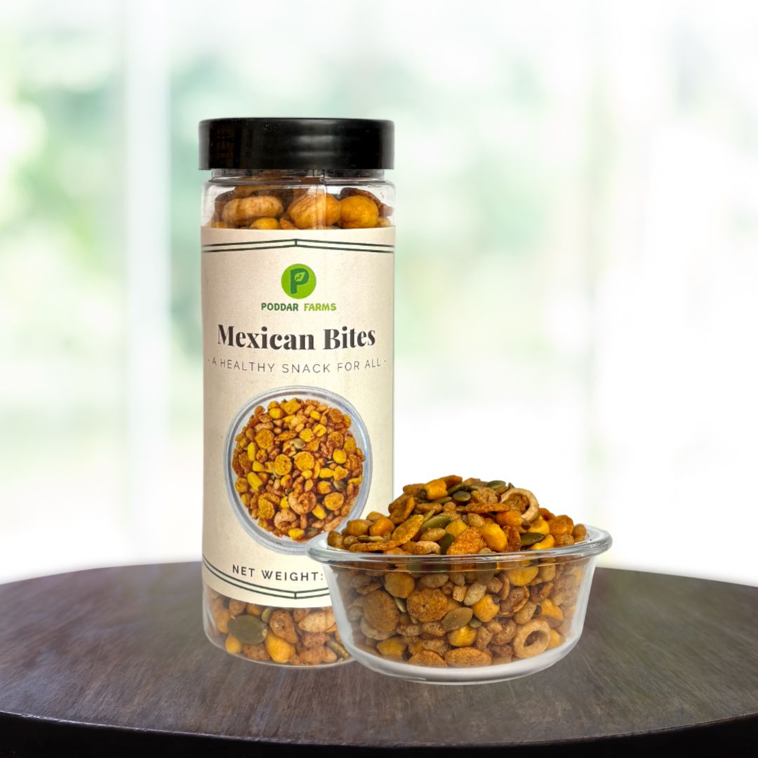 Mexican Bites – the perfect mid-meal indulgence designed for days when you crave a munch without compromise. Crafted from a blend of corn, rice, oats, and jowar puffs, this delightful roasted mixture is a flavor-packed delight. The unique Mexican masala mix adds an edgy twist that caters to every taste bud.